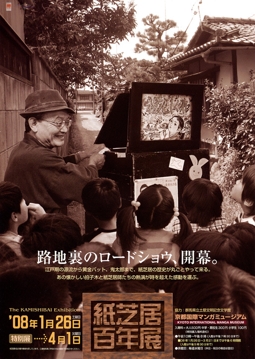 京都国際マンガミュージアムでは、開館当初より街頭紙芝居の実演を毎日行ってきた。「マンガ」を扱う文化施設で紙芝居を取り上げるひとつの理由は、紙芝居の実作者が作り出した世界を、語り手と観客が直接コミュニケーションをとりながらその場で“再創造”していくというそのスタイルに、しばしばパーソナルで一方向的なメディアになりがちなマンガの読書体験とは異なる可能性を見出しているからである。一方、鶴見俊輔が指摘するように、日本におけるマンガ史を考える上で、日本独特のメディアと言われている紙芝居の存在は無視することができない。