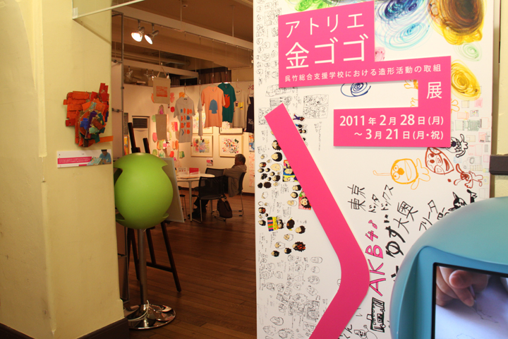 展覧会名にある「金ゴゴ」というのは、京都市立呉竹総合支援学校の金曜日の午後に行われている創作の授業の略称。本展は、この「金ゴゴ」で作られた作品を中心に、同校の児童・生徒による力強くも繊細な作品を紹介した。