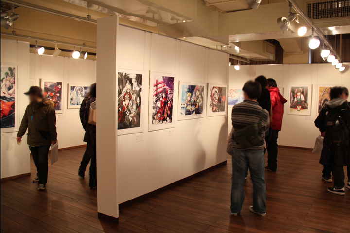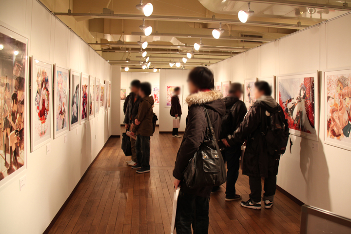 今回の展覧会は「日本」をテーマにイラスト作成を呼びかけ、それに応じた105名の絵師達の作品を展示したものだ。若手からベテランまで作家が参加しており、どれを見ても画風に個性があふれ出ている。