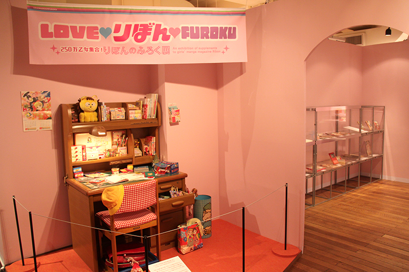 1955 年に創刊し、1994 年に少女マンガ誌史上最高発行部数255 万部を達成し、今なお少女読者に愛されている『りぼん』のふろくに注目した展覧会。りぼんの黎明期から現在までのふろく文化の変遷を追うことで、時代ごとの少女像、雑誌を取り巻く出版事情、マンガ家と編集者、デザイナーや印刷所など作り手の姿も浮かび上がってきた。出展資料の多くは京都国際マンガミュージアムに寄贈されたふろく資料で初活用された。組み立て状態で展示している点でも画期的だった。展示内容は平成28 年度「メディア芸術連携促進事業」連携・協力の推進に関する調査研究「超」領域展覧会の企画立案:「少女マンガ誌・およびふろくにまつわるオーラルヒストリー」で得た知見を参考にしている。同プロジェクトで実施した1980 年代から現在の『りぼん』を支えた編集者へのインタビューは、「メディア芸術カレントコンテンツ」にて公開され、貴重な記録となっている。本展は東京、秋田にも巡回され好評を博した。
