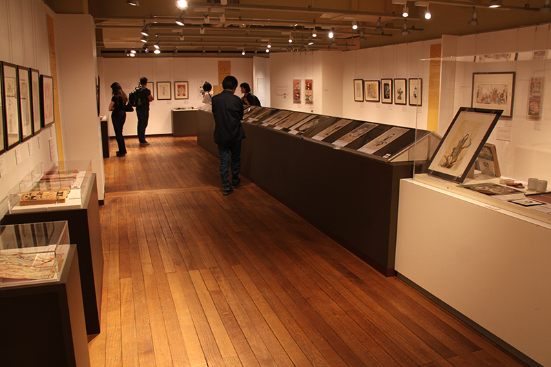 掲載雑誌、関連グッズ資料も含めるとおよそ300点となり、これだけ大規模な氏の個展は関西初だ。