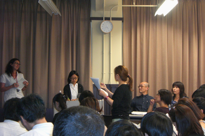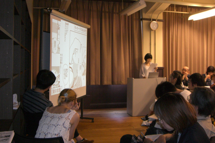 マンガ研究科の理論系院生が取り組む研究テーマはさまざまではあるが、公開の中間報告会には共通項が望ましいという考慮から「女性マンガ」を本研究会の中心に据えた。この問題は、腐女子論やマンガ・ジャンル論から、特定のジャンルから外れる女性作家の考察に至るまで報告の過半数と何らかの接点があるだけでなく、今回のフロアーが豪華なメンバーからなるほど近年注目を浴びているテーマでもある。こうして、自らの問題設定を紹介した報告者は、資料の選択と把握に加え、方法論に関する指摘を数多く得ることができた。中でも、腐女子と同人誌との区別や、「内部規範」の社会学的定義が求められ、BLにおける美少年については、精神分析やクイア理論の知識を高めながら、「ペニス」よりも「ファルス」の存在を追求することがマンガ特有の記号性との関係から薦められた。また、BLマンガの「不可視」な女性キャラクターに当たって、「みられる者」の力やその「みる者」との具体的な関係、そしてこれをめぐる「約束」が照らし出された。BLなどの「約束」あるいはリテラシーから逸脱するマンガを如何に位置づけるかが論題になった際、特定の読者層にとっての「分かりやすさ」を近代文学や芸術映画にも見出し、また、多義性を主流マンガにも認める必要があり、多義的読みの可能性を必ずしも「作者性」に還元しないように主張された。つまり、記号論や文学研究、フィクションのポスト/モダン論を参照する重要性が見えてきたが、全報告については諸問題やその言説をめぐる歴史的意識を高めることも残された課題となった。
