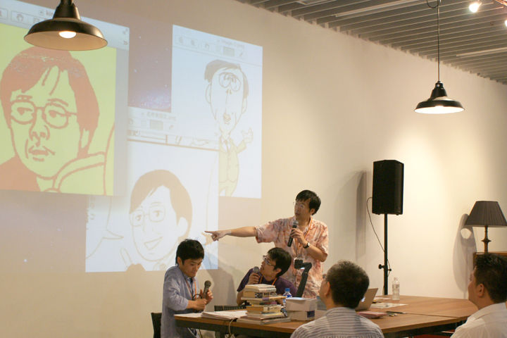 「マンガカフェ」初、絵を描くワークショップを開催。「オトナの似顔絵」と題して似顔絵史の概説と作画ワークショップを実施した。