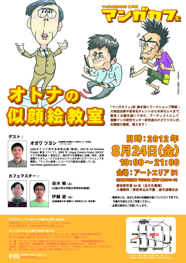 ◆主催:アートエリアB1(大阪大学/NPO法人ダンスボックス/京阪電気鉄道会社) ◆共催:京都精華大学国際マンガ研究センター/大阪大学21世紀懐徳堂 ◆企画担当/カフェマスター:伊藤遊