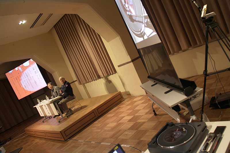 今日ではほとんど見ることのないソノシートだが、講演の話題にそって、ソノシートも実際に鑑賞した。CDとは違った趣きのある音源を聞きながら、その音に秘められた当事者達の拘りを知ることができた。