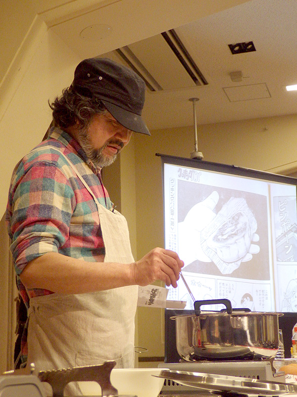 今回は、料理マンガ「クッキングパパ」の作者・うえやまとち氏を迎えた調理実演付きのトークショーを開催し、マンガ制作に関するトークだけでなく、香り、味、音といった様々な角度からマンガを感じる機会を参加者に提供した。