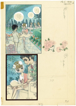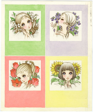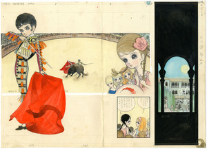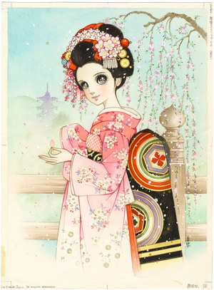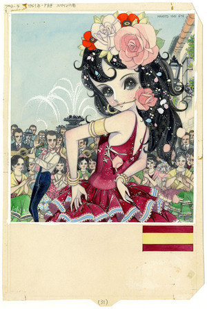 1934年、大阪府生まれ。1950年代半ばから赤本・貸本漫画で活躍後、1957年より『少女』で、バレエ漫画「あらしをこえて」を連載、雑誌デビューを飾る。ページの縦いっぱいに少女の全身像を描く「スタイル画」と呼ばれる手法や、瞳の中でキラキラ輝く星の表現など、独特の作風は以降の少女マンガに多大な影響を与えた。「プチ・ラ」(原作:橋田壽賀子)などのヒット作の後、抒情画の世界に舞台を移し、雑誌の表紙や少女向けの文房具など様々な媒体でイラストを発表。少女文化を代表する作家として世代を超えた幅広いファン層を獲得している。 (所蔵点数:31点)