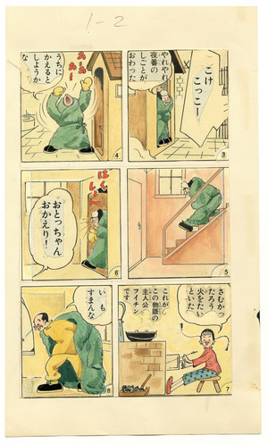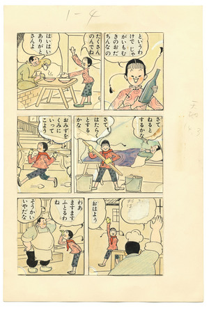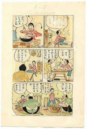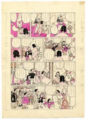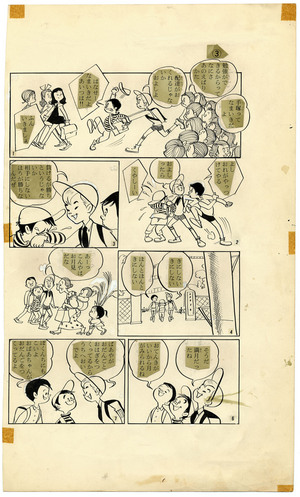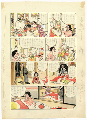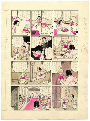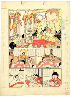 1917年、東京都生まれ。17歳で松本かつぢに師事し、抒情画やマンガを学ぶ。1951年、集英社の『少女ブック』に「ぼくちゃん」を発表し注目を集めた。1957年に、講談社の『少女クラブ』で連載したマンガ「フイチンさん」は、旧満州を舞台とした中国人少女の物語で、明朗で利発な主人公は大人気となり、1960年には小学館漫画賞を受賞。少女むけのユーモア漫画の先駆者であると同時に、長谷川町子とならぶ最初期の女性漫画家として、後のマンガ界に大きな影響を与えた。2003年に日本漫画家協会賞文部大臣賞を受賞。2008年に逝去。(所蔵点数:35点)