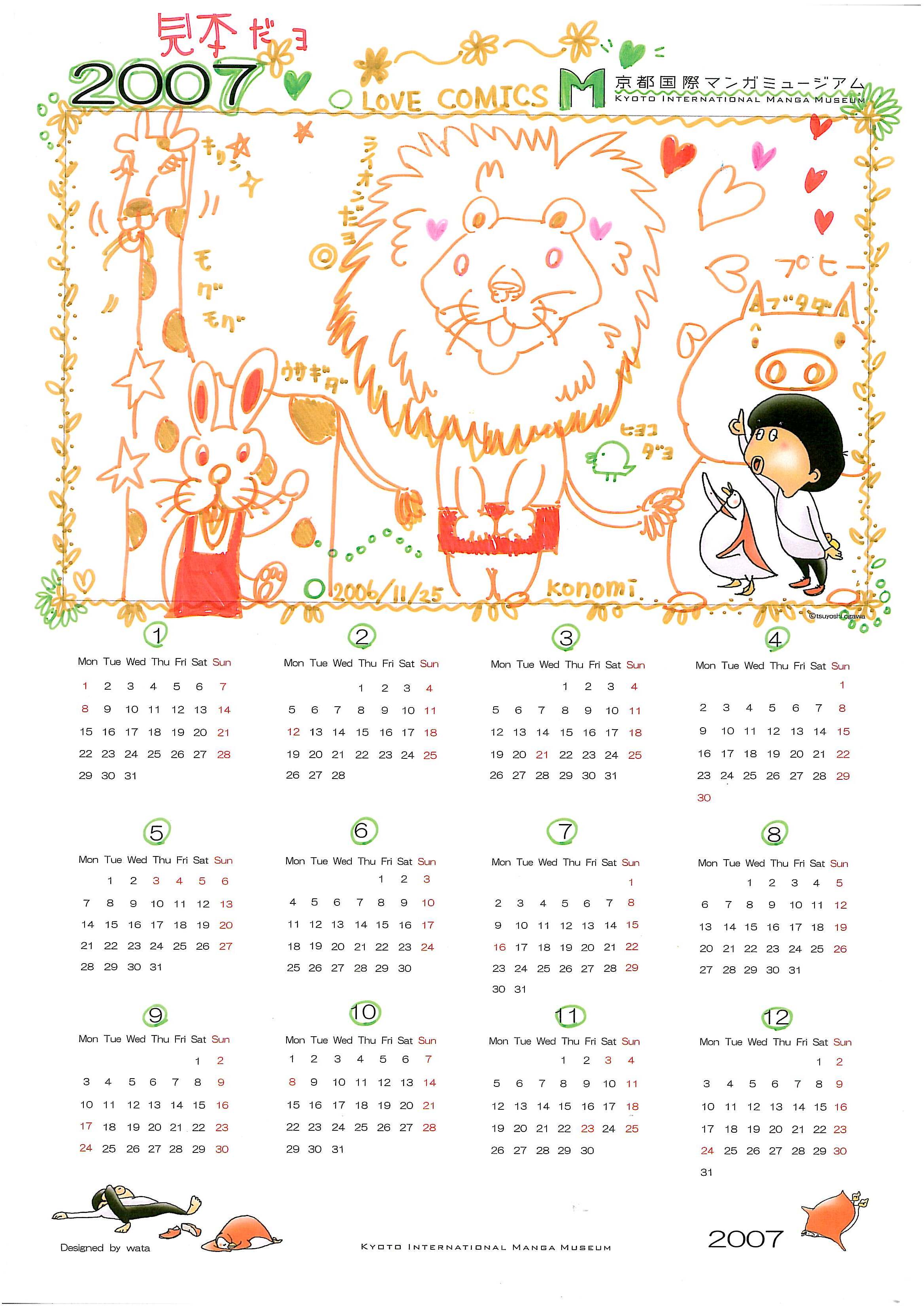 カレンダーは年間1,000種類以上販売され、その中でもコミックカレンダーは毎年売り上げTop10に入るほど人気がある。そんな最も身近にあるものの1つであるカレンダーに、好きなマンガや2007年の干支「猪」などを自由に楽しみながら描いてもらった。出来上がった作品は、家族や友達、動物など身近なモチーフを表現した物が多く、マンガを通じて「身近なもの」を再確認するものとなった。