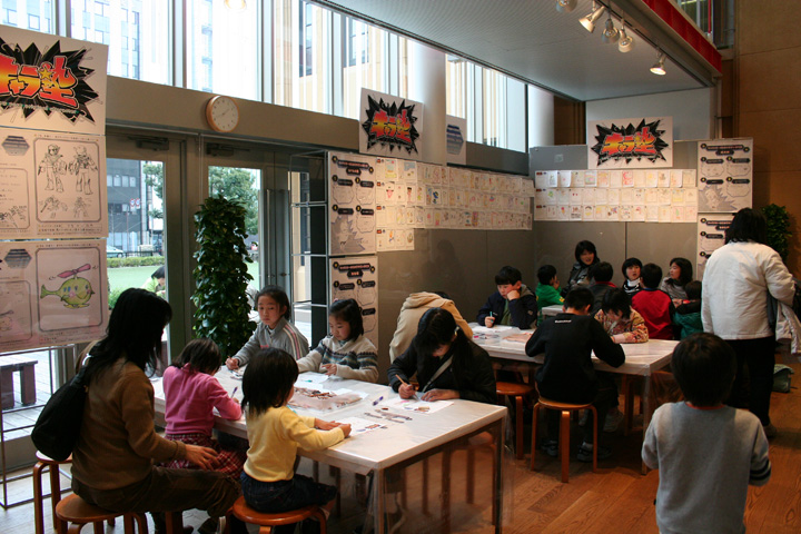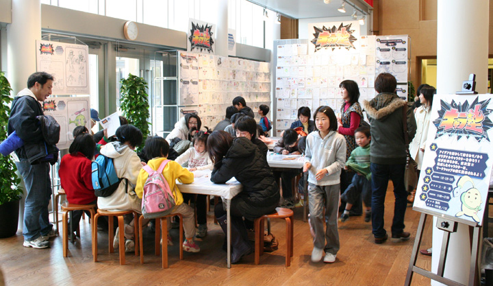 2008年1月7日、京都国際マンガミュージアム公式マスコットキャラクター「マミュー」が誕生した。本企画は「マミュー」誕生を記念して開催。マンガ表現の中でも大きな役割を担うキャラクター。そのキャラクターがいかにして考えられ、作られているのかを体験するワークショップ。参加者は第一段階でアイデアを出し、一度スタッフがチェックを入れる。第二段階で校正された絵をよりよいものにする作業を行う。作画を2段階にし、スタッフが一度途中段階で関わることで、内容の詰まったおもしろいものになった。キャラクターを創作するプロセスを体験することができたのではないか。会場に展示スペースを設け、完成作品が比較展示が可能となった。