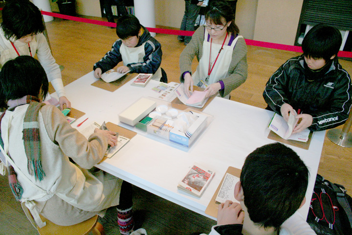 当館で閲覧されるマンガは「資料」としての扱いを受けている。このような取組は前例が少なく、試行錯誤の連続。またそれらマンガ資料がどのようにして集められ、整理、保存されているのかなどを解説する機会もあまりない。そこで本企画は収蔵庫のバックヤードツアーや資料保存に欠かすことのできないブックカバー作業など『司書』の仕事を通して体験するワークショップを実施。