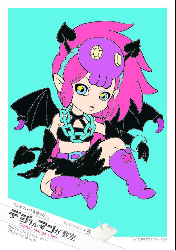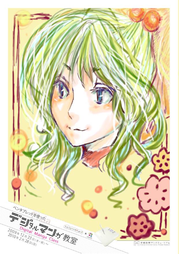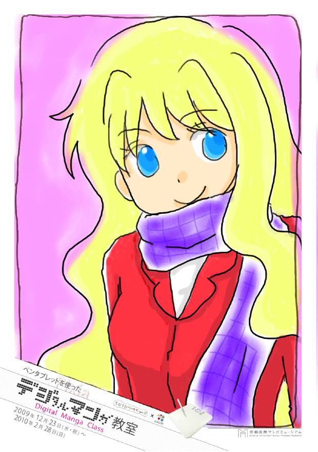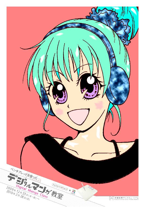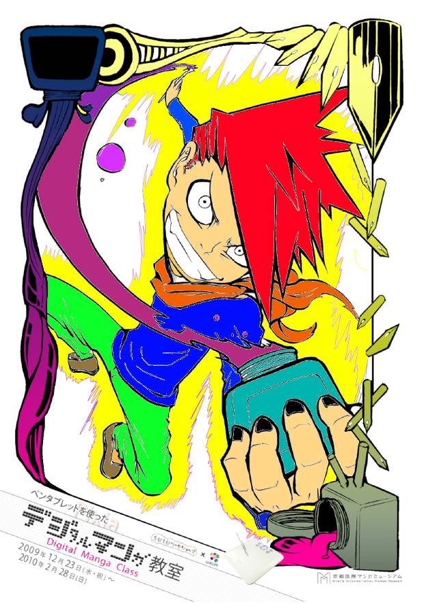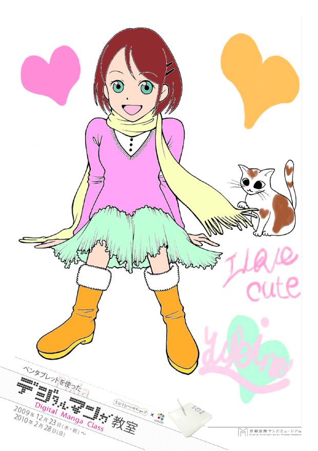 近年インターネットなどコンピュータの普及によりマンガ業界もデジタル化が進み、多くのマンガ家が作画を従来のペンやインクだけに頼らず、パソコンでの作業を取り入れている。本企画はマンガ制作におけるデジタル作画の魅力や楽しさを体感する事を目的とした。作画ソフトはフリーダウンロードソフト「Pixia(ピクシア)」を使用、作画ツールは株式会社wacomのペンタブレット「BAMBOO TM COMIC」を使用した。ペンタブレットとは、パソコン操作をする上でマウスのかわりに、ペンとタブレット(ボード)を使用し、まるでパソコン画面に直接ペンで作画しているような豊かな表現力を楽しむ事ができるキットのことである。マウスに比べ細やかな操作が可能で、線画や着彩などの作業に適している。体験では、16種類のイラスト(線画)と白紙から1つ選択し、自由に作画を楽しむことができる。完成作品はA6用紙にプリントアウトし、記念品としてプレゼントした。マンガ創作においてデジタルツールを用いることへの興味や関心は非常に高く、「デジタル作画」を体験してもらう良い機会となった。
