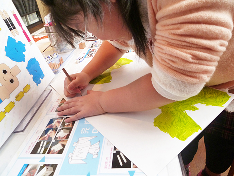 同時期に京都国際マンガミュージアムで開催された「絵師100人展03 京都篇」の関連ワークショップとして、キャラクターグッズの開発や販売を手掛ける株式会社コスパ協力のもと、マンガやアニメなど、多くの人気キャラクターとコラボレーションを果たしているペーパートイ「graphig/グラフィグ」を通して、キャラクター制作の一端を体験できるワークショップを開催。